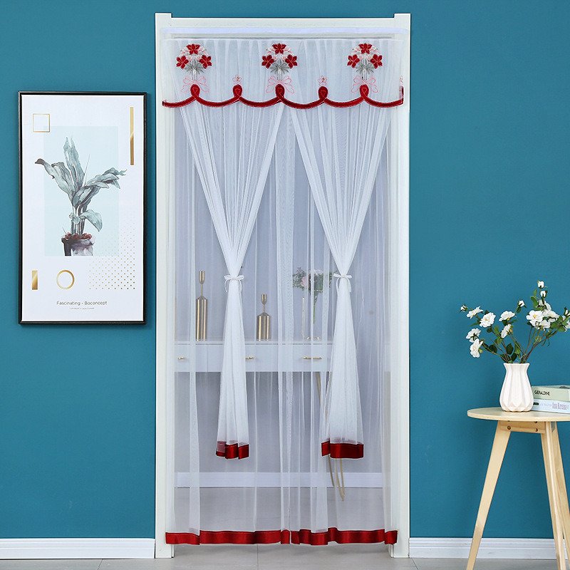 Home > Double Yarn Lace Gauze Door Curtain Quiet Anti-mosquito Embroidered Living Room Bedroom Bathroom Universal Partition Home Decor